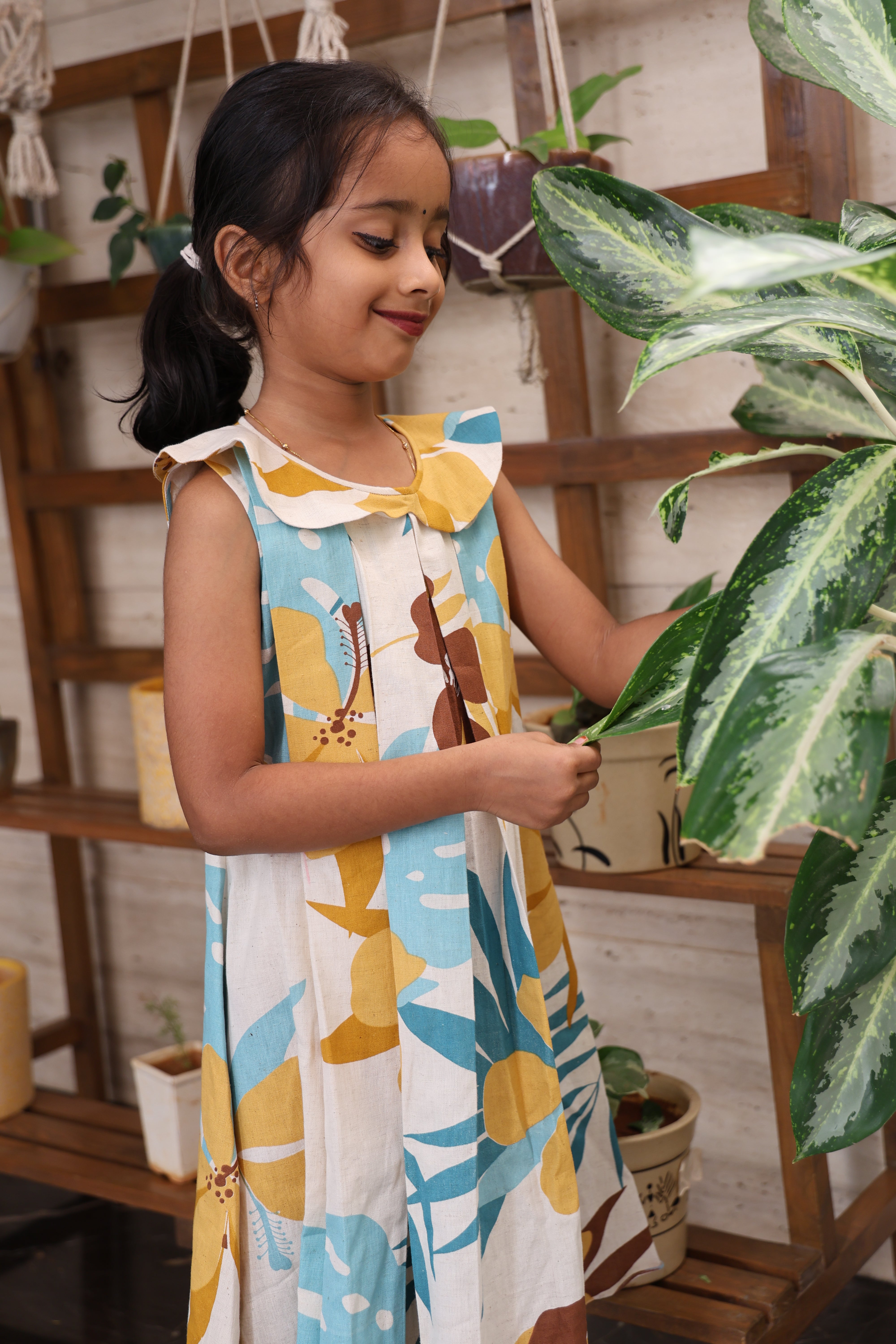 Let your little one shine in our Pastel Paradise Dress, a delightful mix of soft hues and breezy comfort! Crafted from lightweight cotton with charming floral and leaf prints, this dress brings a cheerful tropical vibe that’s perfect for any day out. The peter pan collar and pleated front detailing add a sweet, playful touch — making it a favorite for your little fashionista. 💛
